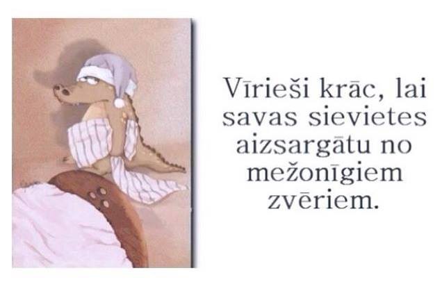 ...vissu laiku esmu domājusi ka katrs vīrietis vai nu ir vīrišķīgs vai vissu mūžu tā ar kā bērns nodzīvo - lutinams un aprūpējams... tādā Tu vīrišķību nepamodināsi.. negribēsi Tu auklēt - atradīs citu.... kas auklēs.... vaitad mazums Aitiņu kurām vienalga kāds - katik bikses kājās....