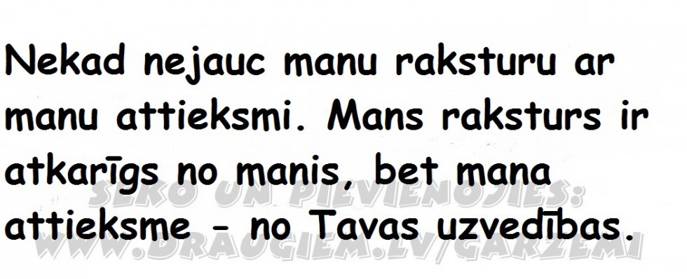 savsem k. 3. jūn 2015. 21:54Mana uzvedība atkarīga no mana rakstura , un raksturs atkarīgs no mana garastāvokļa