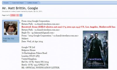 GOOGLE WINNING NOTIFICATION.