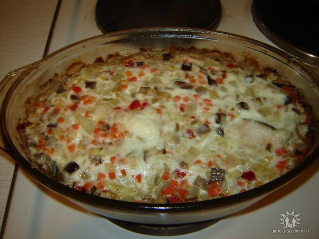 РЕЦЕПТ: На дно формы огнеупорной чуть масла 1-2 ст. л. стакан мытого риса посолить и рыбной приправы чуть чуть на рис стейки чищенной форели( кета, кижучь, горбуша) лимончиком соком, приправкой сухой рыбной, солить меньше в приправе есть соль, сверху лука большую 1-2 головки, режем не мелко средне 1/4 и дольками, последний слой покупаю пачку овощного рагу замороженного и высыпаю сверху лука ровно. Нет рагу можно морковь потереть, перец, баклажан, кабачек меленько кубиком, короче что есть то и режем можно сельдерей, лук порей, наливаем воды что бы видно на поверхности ее не было ну почти до уровня накрываем крышкой и в горячую духовку на 1,5 часа смотрим через стеклянную стенку формы как рис по готовности.... это от духовки зависит может меньше в конце сметану 2ст.л. и столько же майонеза смешать и выложить сверху распределить ровно и поставить открытым форму еще на 20-30 мин. на небольшой температуре что бы верх запекся.