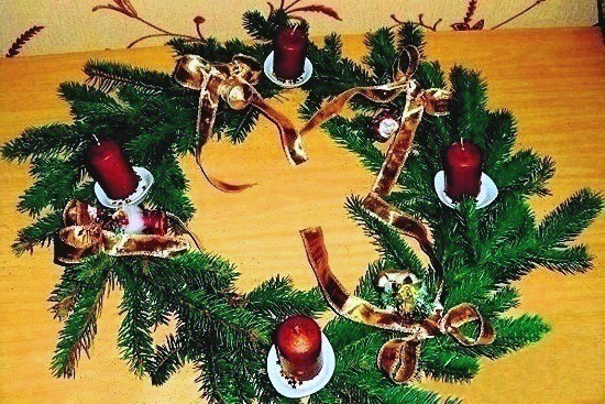 Венок из еловых веток со свечками