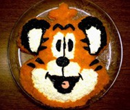 Не забудьте сказать гостям, что усы тигра из зубочисток. Можно для усов взять и тонкую вермишель.