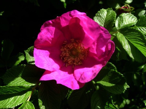 Pie liela akmens mežrozīšu krūms,